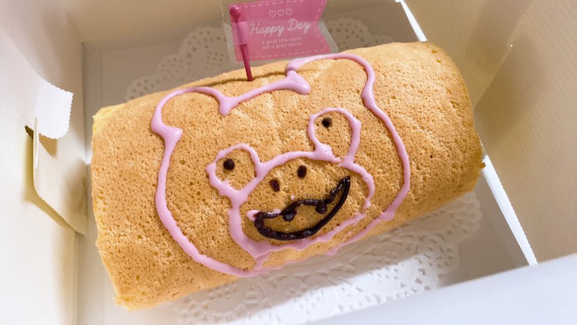 ケーキはたまに趣味で作るのですが、今回はロールケーキを作り、さらにその上にあるキャラクターを書きました!